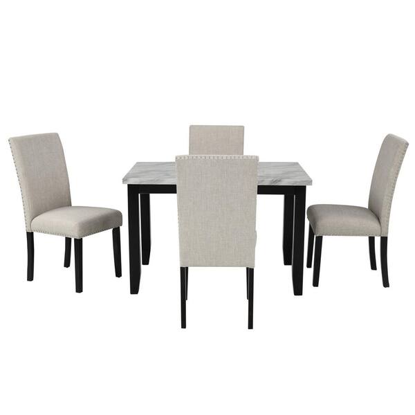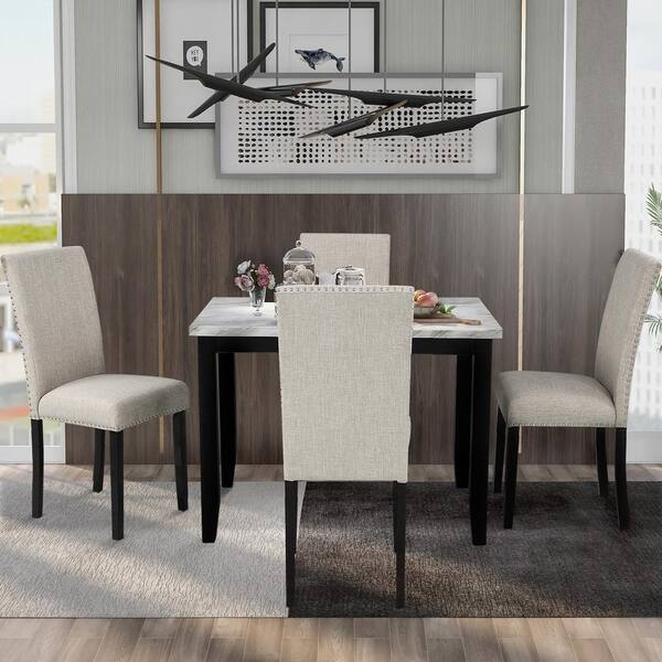 Godeer 5 Piece Rectangle Faux Marble Top White Dining Table Set With 4 Thicken Cushion Dining Chairs St000040aak The Home Depot