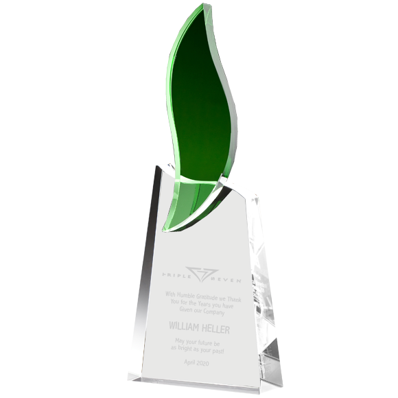 Green Flame Crystal Award Green Flame Crystal Award Etched Glass Flame Trophy Paradise Awards